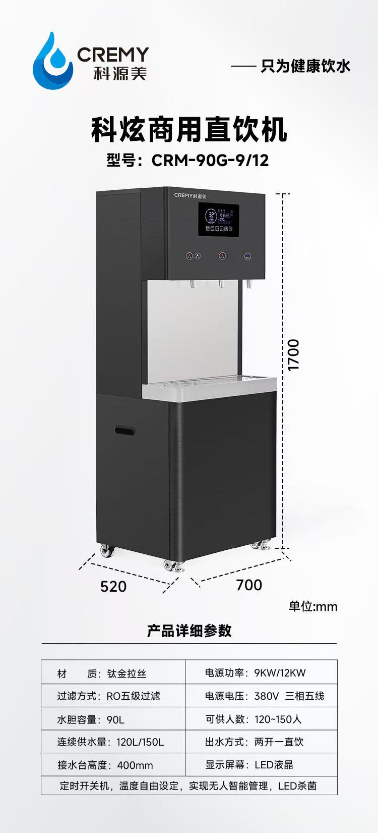 科源美 CRM-90G-9/12 饮水器 钛金拉丝 LED液晶显示屏